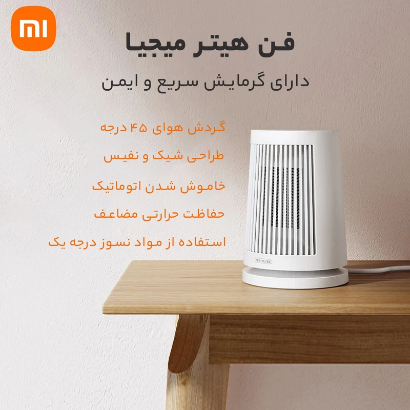 بخاری برقی رومیزی شیائومی مدل Mijia ZMNFJ01YM با طراحی جمع و جور و ظاهری مدرن، قابل استفاده بر روی میز کار، کنار تخت و یا هر مکان دیگر است. روش گرمایش به صورت PTC فراهم شده که گرمایی سریع، ایمن و پایدار را ایجاد می کند. این محصول با بهره وری از سیستم های حفاظتی مختلف، ایمنی در حین استفاده را تضمین خواهد کرد. جنس بدنه از پلاستیک نسور ABS با درجه ایمنی V-0 می باشد که مقاوت لازم در برابر گرما را دارد. مکش هوا از سطح 360 درجه ای زیر دستگاه صورت می گیرد که امکان قرار گرفتن هیتر کنار دیوار را فراهم می کند. وزش هوای گرم را می توانید زاویه دار تنظیم کنید تا حرارت به صورت چرخشی و با زاویه 45 درجه بدمد.بخاری برقی شیائومی ZMNFJ01YM ، در نگاه اول یک بخاری برقی کوچک و رومیزی است که ساختار بدون زاویهاش، قرار گرفتن کنار دیوار را غیرممکن میکند. برخلاف ظاهر غلط اندازش، شما میتوانید بخاری را نزدیک دیوار قرار دهید، چرا که گرما به صورت 360 درجه از زیر دستگاه خارج میشود. در بدنه خارجی، هیچ اثری از فلز نیست. طبق انتظارمان، بدنه از پلاستیک ABS فشرده با تحمل دمای بالا و 7 فرآیند سختگیرانه ساخته شده و به ماژول چرخشی 45 درجه مجهز شده است تا گرما را با اندکی زاویه، به اطراف پرتاب کند. ارتفاع 18 سانتی متری و پهنای 13 سانتی متری، بار دیگر تاکید میکند که با یک بخاری برقی جمع و جور روبرو هستیم که قرار گرفتنش روی میز، فضای زیادی را اشغال نمیکند.سیستم گرمایش بخاری برقی شیائومی ZMNFJ01YM، گرمایش PTC با انتقال حرارت همرفتی است. این بخاری فاقد سیم پیچی درونی بوده و از المنت سرامیکی برای گرمایش بهره میبرد. در مورد این سیستم میدانیم که راندمان تبادل حرارت بالا داشته و صرفه جویی در مصرف برق، ویژگی بارز آن محسوب میشود. PTC گرمایش یکدستی را فراهم میکند، به همین دلیل در مقایسه با سیستم های سنتی با مصرف برق بالا، محبوبیت پیدا کرده است. در این بخاری خبری از تابش خیره کننده نیست و در قیاس با ابعاد محصول، منتظر توان گرمایشی خوبی باشید.